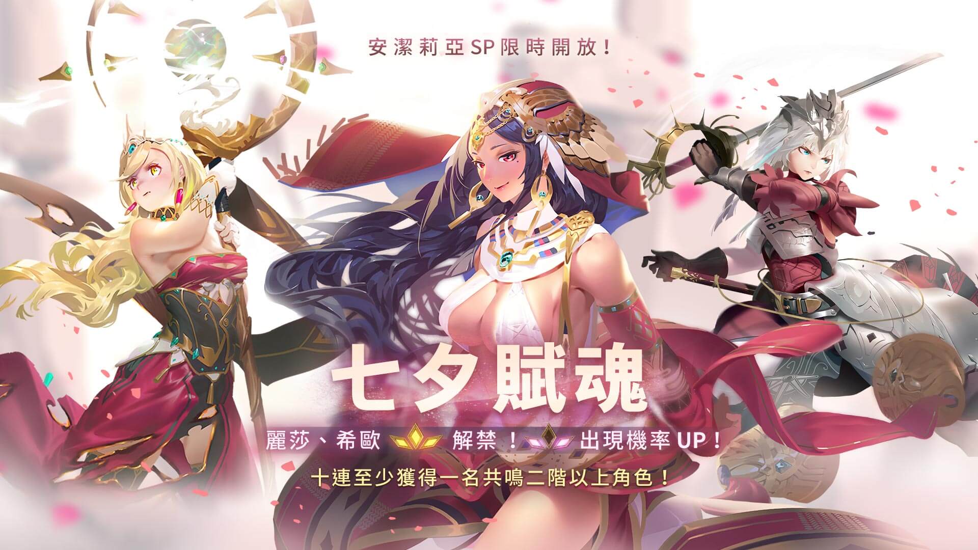 賦魂活動預告: ⦿ 『七夕賦魂』即將開放! 活動時間(GMT+8): 2018.8.8 12:00~2018.8.22 5:00 麗莎、希歐共鳴三階解禁!同步展開 Pick Up 活動! 安潔莉亞SP 限時開放! ⦿ 商賈賦魂將於 2018.8.8 5:00 (GMT+8) 結束 ※ 預定時程有變動時,以後續公告的內容為準。